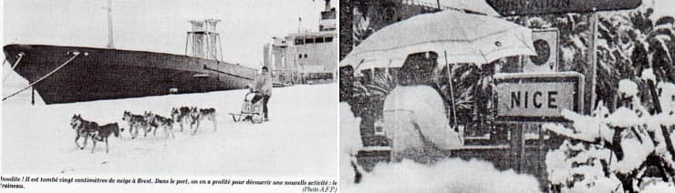 Du 12 janvier au 6 février, une vague de froid s'invite en France. On relève -18 degrés à Montpellier, et le sol gèle sur 60 centimètres en région parisienne et la glace fige les cours d'eau, lacs et même certains fleuves. Le dégel n’arrivera que début mars. Cet hiver est considéré comme le plus rude du 20ème siècle.