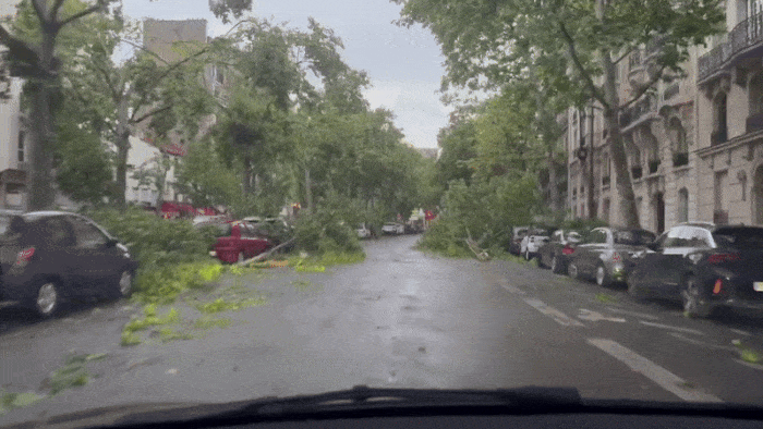 L'Île-de-France n'a pas été épargnée. De violents orages accompagnés de rafales de vent tempétueuses ont gagné la région parisienne aux alentours de 21 heures ce mercredi 25 juin 2025. On a relevé jusqu'à 109 km/h à l'aéroport du Bourget et 98 km/h à Villacoublay ! Nul doute que des pointes à plus de 100 km/h ont soufflé dans certaines rues de la capitale, causant de très nombreuses chutes d'arbres comme le montrent les images ci-dessous dans le 16ème arrondissement.
