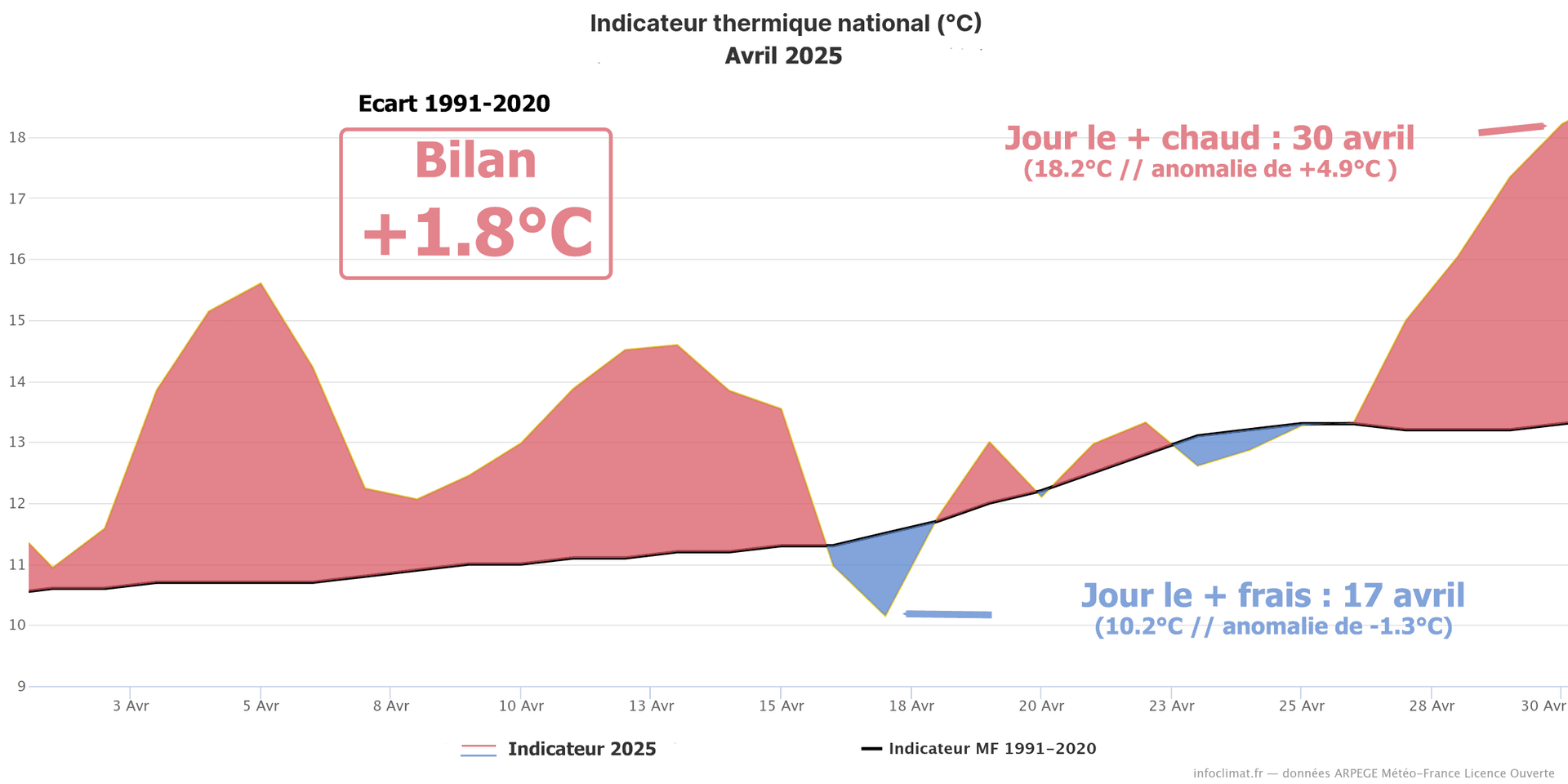 Indicateur thermique national pour avril 2025 depuis l'après-guerre (1945) - Infoclimat