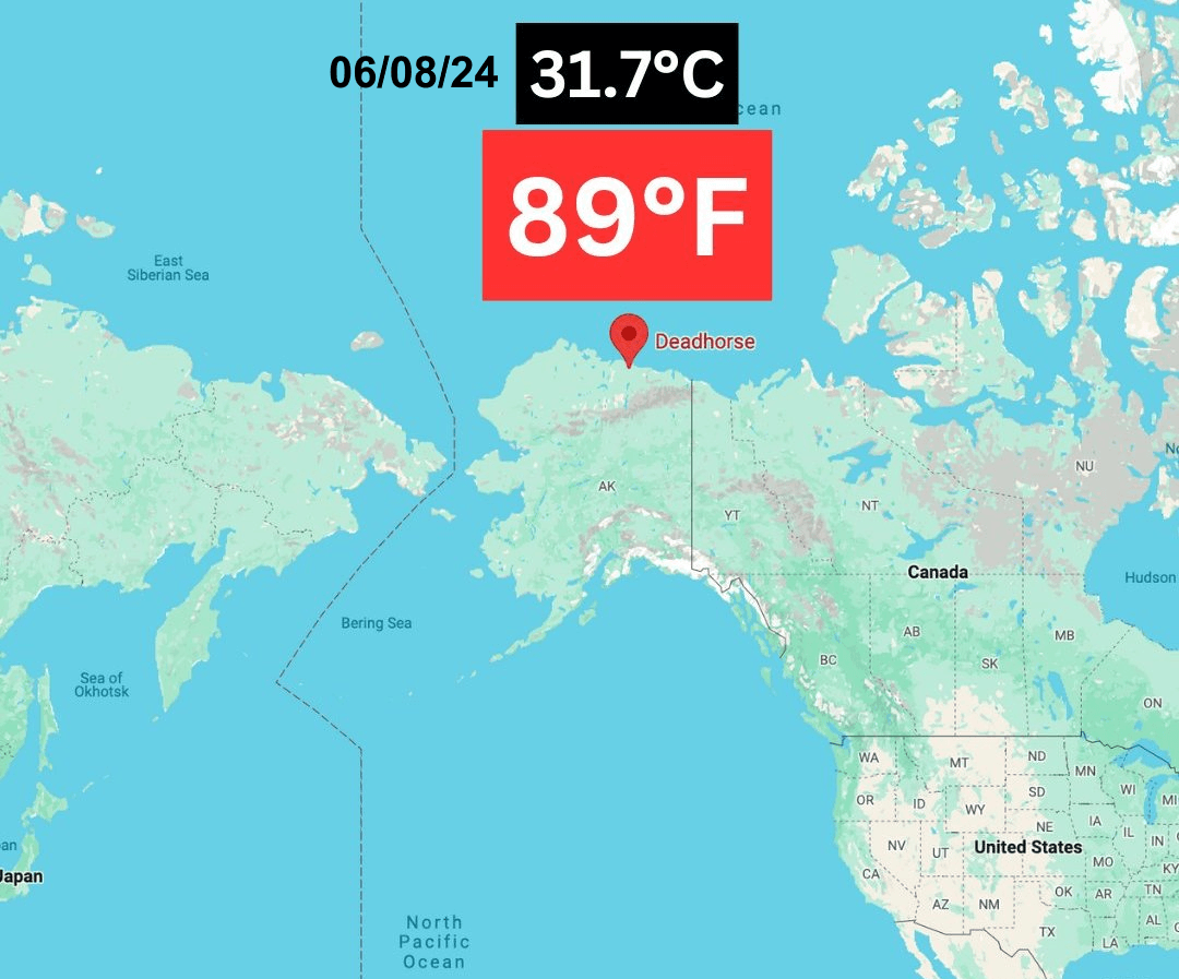 31,7°C à Deadhorse (Alaska) à une latitude de 70° nord le mardi 6 août 2024 - via MyRadarWX