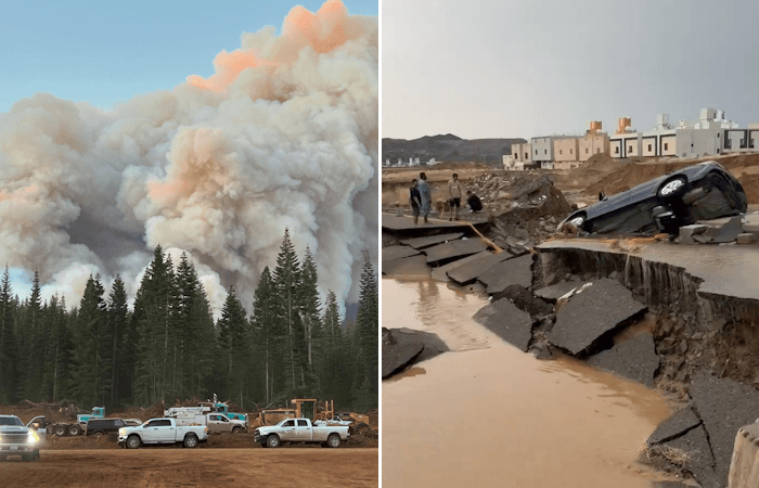 Cette semaine a été marquée par plusieurs vagues orageuses virulentes en Arabie Saoudite, dont le climat est pourtant désertique à cette saison. À La Mecque, il ne tombe en moyenne que 13 mm de pluie durant le trimestre juin-juillet-août. Les orages qui ont éclaté cette semaine ont déversé près de 40 mm de pluie ! Après plusieurs mois de sécheresse et de températures quotidiennement comprises entre 40 et 49°C, les sols desséchés ont été incapables d'absorber ces importantes quantités de pluie, conduisant à des inondations majeures qui ont causé de gros dégâts à La Mecque et ses alentours.