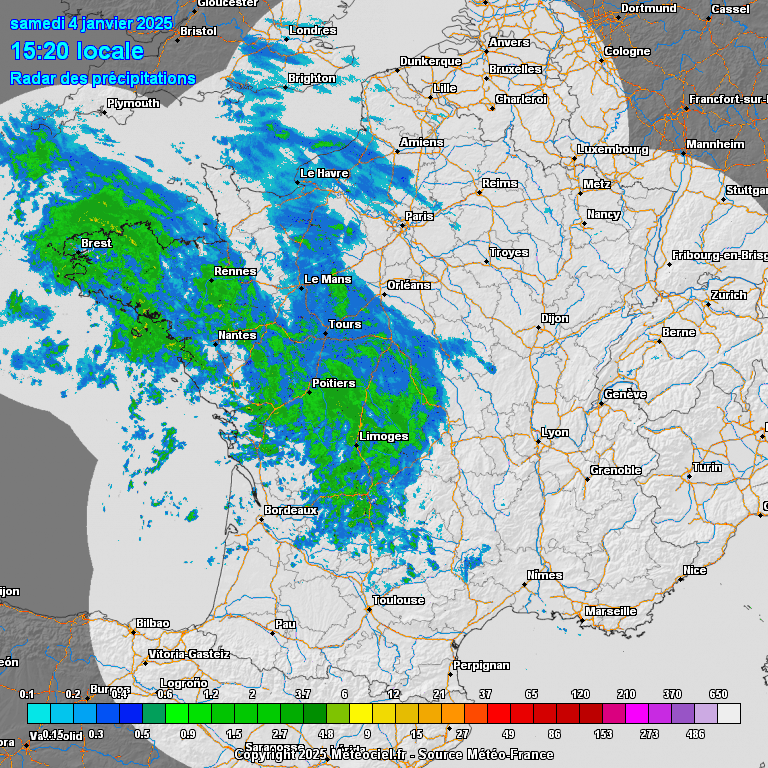 Imagerie radar ce samedi 04 janvier 2025 - Meteociel