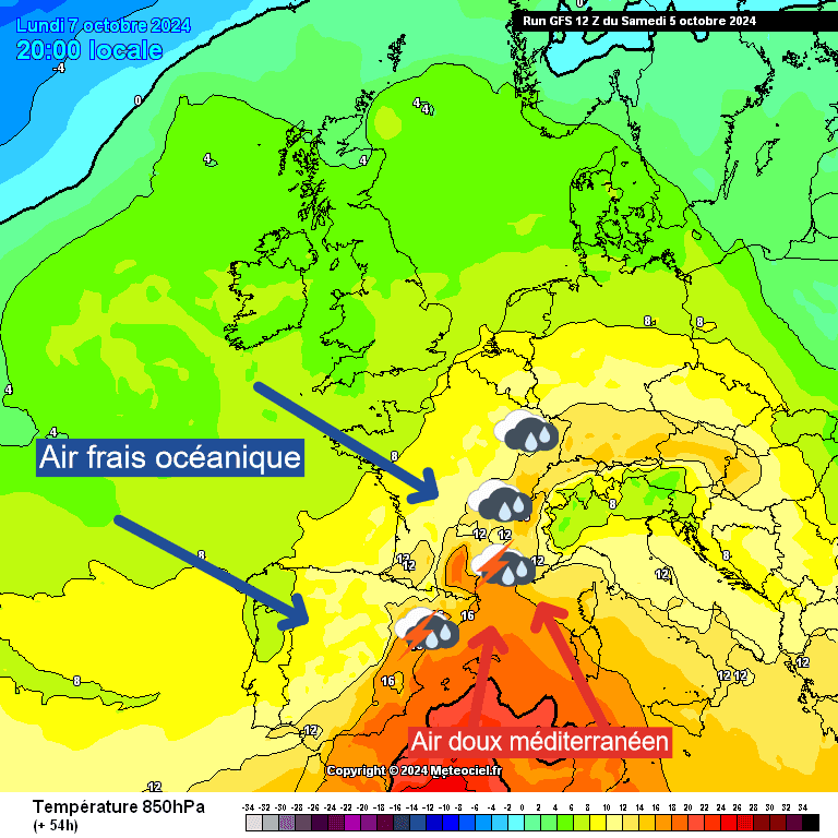 L'explication plus profonde à chercher sur cet épisode perturbé est à trouver du côté de la masse d'air... Très chaude, remontant sur la Méditerranée. Elle va alors gagner rapidement en humidité. Le contact avec l'air frais présent sur l'Europe et les effets de relief vont générer les pluies les plus intenses.