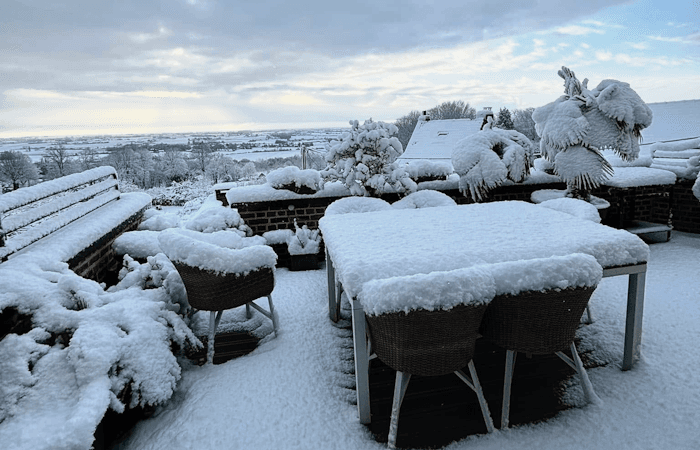 Plus tardivement, ce fut au tour de la Somme et du Nord-Pas-de-Calais d'être concernés par cet épisode neigeux. Le département le plus touché fut le Pas-de-Calais où les chutes de neige ont perduré durant une bonne partie de la nuit et jusqu'en matinée du jeudi 9 janvier 2025. C'est sur les hauteurs de l'Artois que les cumuls furent les plus importants avec parfois une dizaine de centimètres vers 200 mètres d'altitude, comme l'illustre la photo ci-dessous à Cassel.
