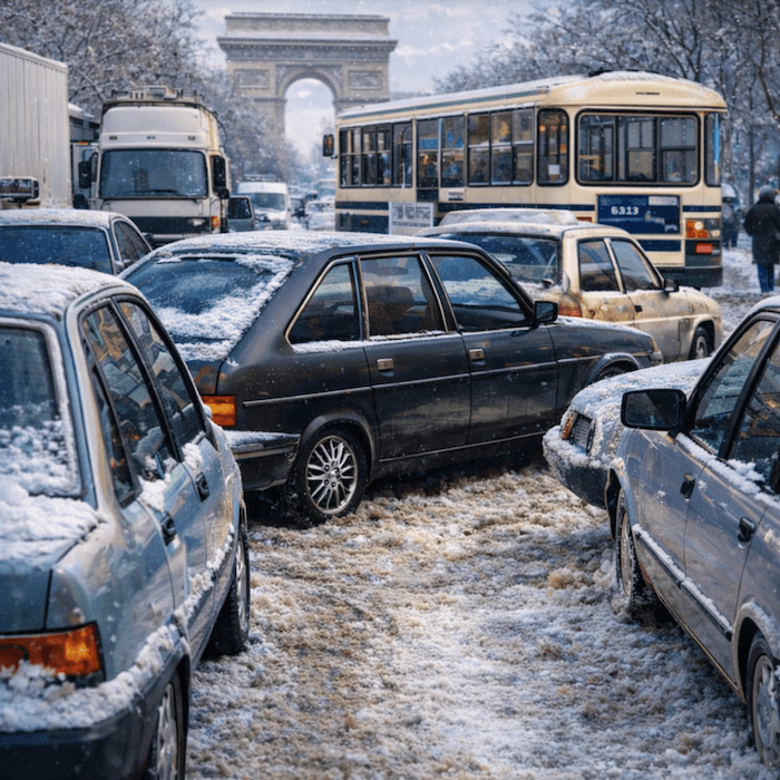 Il faut dire que Paris n’avait pas connu une telle accumulation de neige depuis janvier 1966. Dans la capitale comme ailleurs, les rues sont bloquées, les transports à l’arrêt, et les bulldozers sont mobilisés pour dégager les axes principaux.