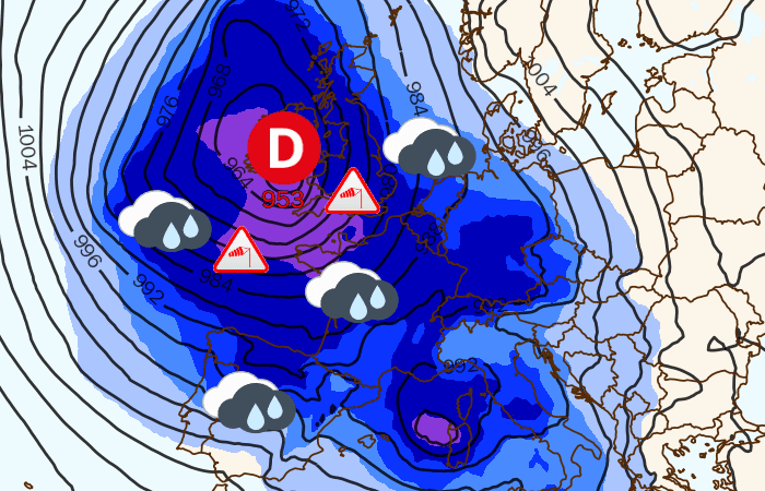L'agitation actuelle est liée à un système dépressionnaire particulièrement actif sur le proche-Atlantique. Ces basses pressions sont centrées au sud-ouest de l'Irlande. Le coeur de la dépression continue de creuser et atteindra son pic ce mercredi 27 mars 2024. Les baromètres devraient s'abaisser autour de 955 hPa à moins de 1000 kilomètres de la France et le nord-ouest de l'hexagone passera sous les 980 hPa. Directement sous l'influence des basses pressions, notre pays est donc soumis à une météo agitée, entre pluies copieuses, vents forts et neige en montagne.