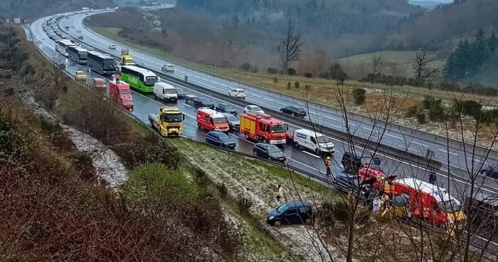 Carambolage suite à la grêle sur l'A89 ce dimanche 22 mars – Photo : Thierry Boutillier via Le Progrès