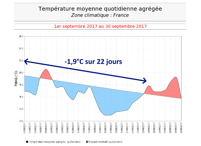 Anomalie thermique quotidienne en septembre 2017 en France - Météo France