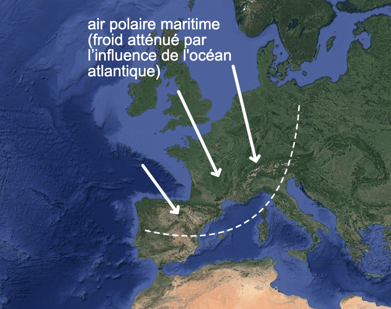 En fait il faut d'abord savoir qu'avant d'arriver sur nos régions, la descente froide polaire survolera de vastes étendues maritimes et océaniques (Mer de Norvège, Mer du Nord, Manche, Océan Atlantique). Par conséquent si l'air sera très froid en altitude, il aura le temps de se réchauffer au-dessus de l'eau et arrivera sur nos régions de plaine de manière atténuée.
