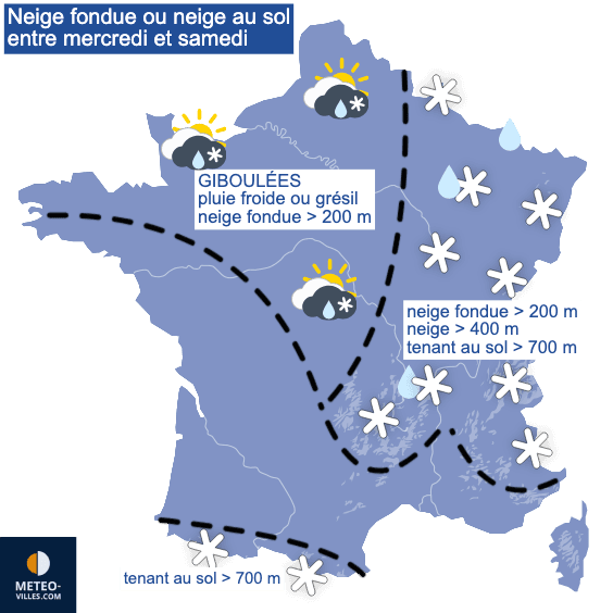 carte METEO-VILLES des risques de neige en seconde partie de semaine