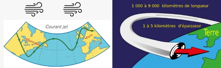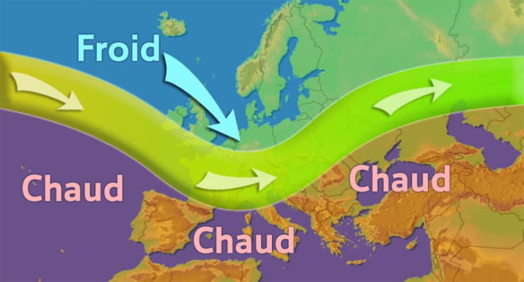 Jet stream circulant entre l'air froid des hautes latitudes et l'air chaud des latitudes plus méridionales