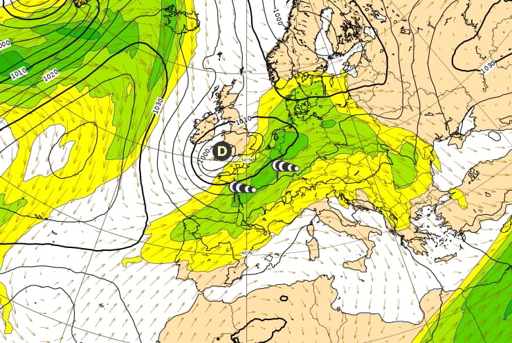Dans ce contexte humide et comme le rail dépressionnaire ondule sur le nord de la France (basses pressions britanniques et hautes pressions méditerranéennes), les régions septentrionales sont copieusement arrosées. C'est entre la Bretagne et la Belgique que sont observés les cumuls les plus importants en cette première moitié de semaine, atteignant souvent 30 à 50 mm avec des pointes de 60 mm dans certains secteurs.