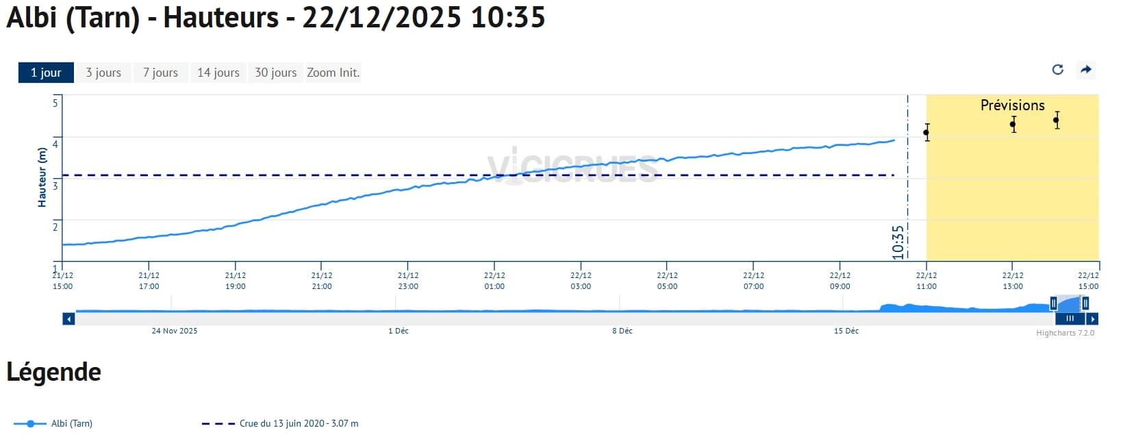 Évolution du niveau de l'Aveyron à la station d'Albi (81) – Vigicrues
