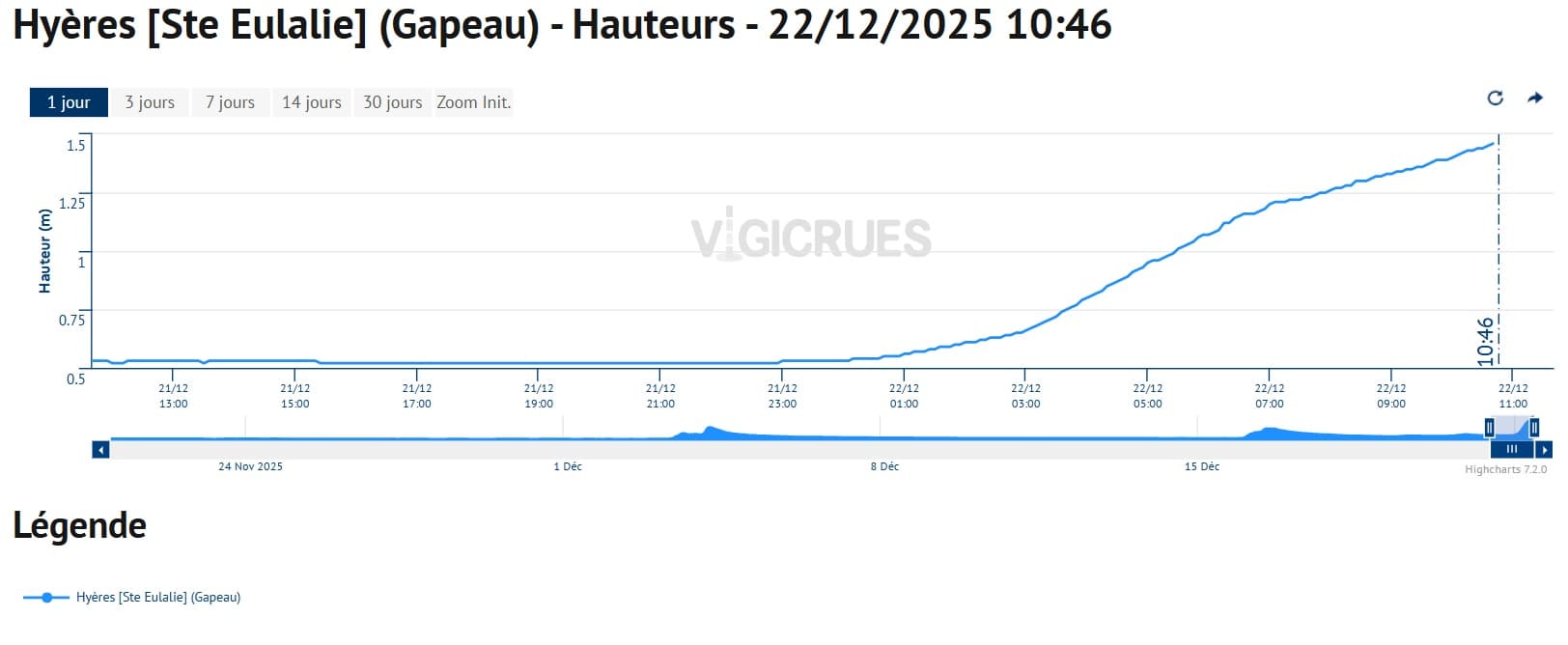 Évolution du niveau du Gapeau à Hyères (83) – Vigicrues