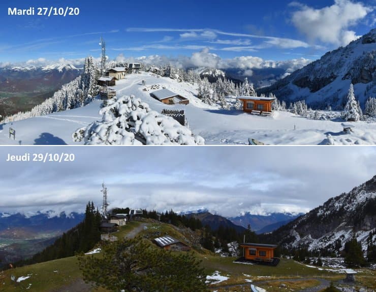 Comparaison de la Sambuy (Haute-Savoie) entre le mardi 27 et le jeudi 29 octobre 2020 - webcam skaping