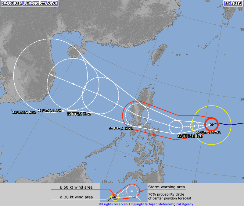 Trajectoire prévue du typhon Goni dans les prochains jours - Via Japan Meteorological Agency