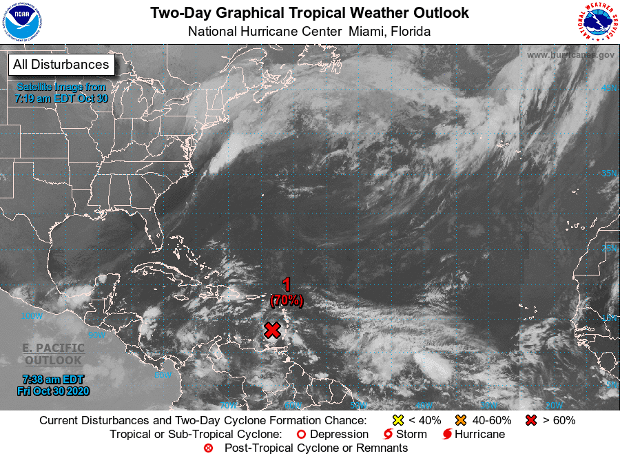 La saison cyclonique se montre extrêmement active dans l’Atlantique Nord, comme envisagé dans les prévisions saisonnières. Celle-ci devrait se terminer à la fin du mois de Novembre et déjà les menaces d’une nouvelle tempête planent sur le centre du continent. Une onde tropicale ayant environ 80% de chance d’évoluer en tempête dans les 5 prochains jours s'est en effet formée sur les Antilles.