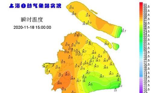 L’Est de la Chine, Taïwan et la Corée furent également touchés par une chaleur très marquée pour la saison avec des températures atteignant 28.4°C à Shanghai (record pour une seconde moitié de Novembre, proche du record mensuel de 28.7°C sur la ville).