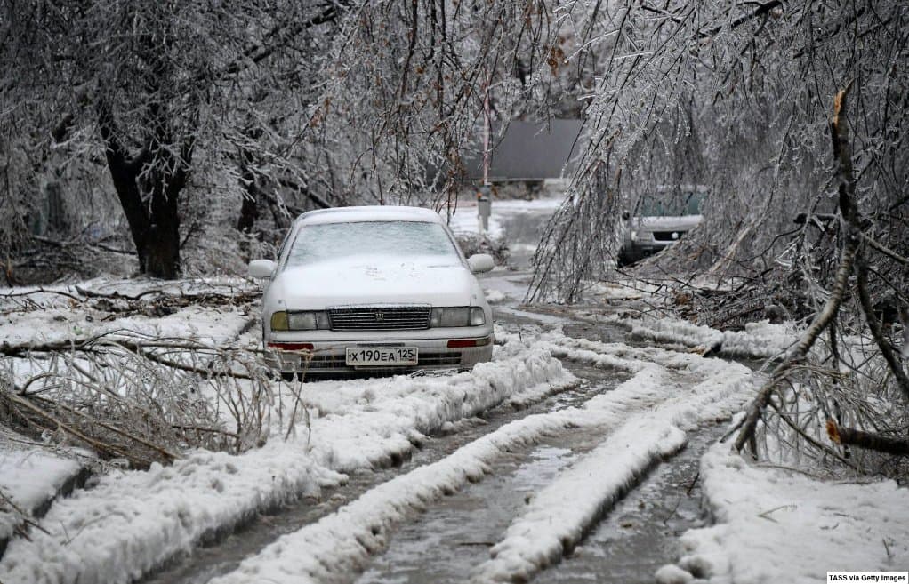 Couche de glace très importante et dégâts près de Vladivostok le 19 Novembre - via BBC Weather