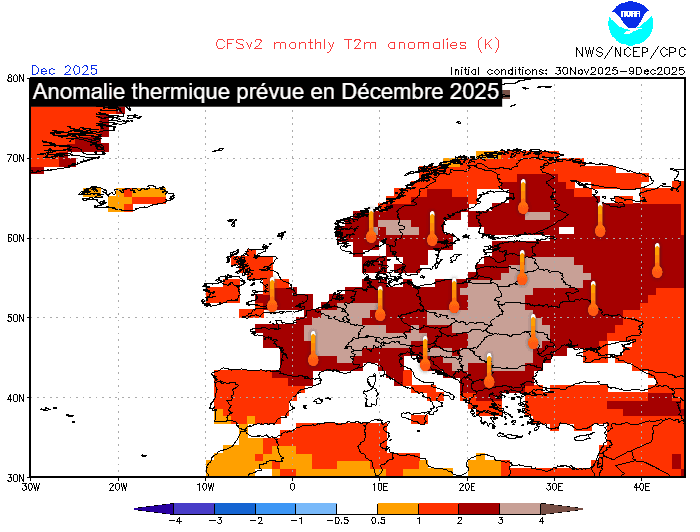 Anomalie thermique prévue en décembre 2025 - NOAA