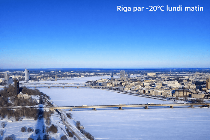 Paysages complètement gelés à Riga en Lettonie sous près de -20°C ce matin – Via Windy