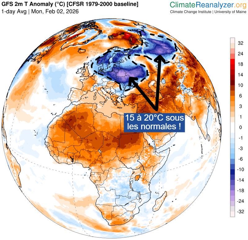 Anomalies de températures sur l'Europe en ce 2 février 2026 – Via Climate Reanalyzer