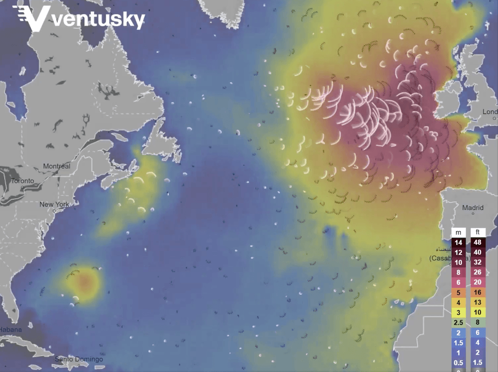 Prévisions de la houle en début de semaine prochaine par le site Ventusky