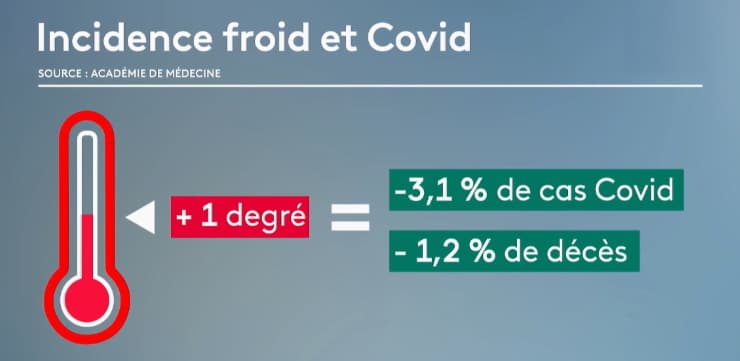 Plusieurs études réalisées au cours des derniers mois ont mis en évidence le rôle du froid sur la propagation du SARS-CoV-2. Elles ont montré qu'en moyenne, une augmentation de la température de 1°C entraîne une baisse de 3,1% du nombre de cas de coronavirus mais aussi une baisse de 1,2% des décès liés à la maladie.