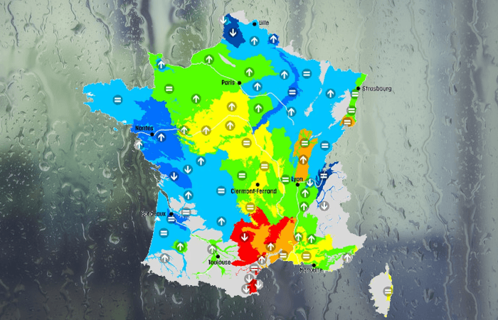 Avec ces épisodes pluvieux répétés, l'amélioration n'est pas observée qu'en profondeur. En surface, les cours d'eau affichent des niveaux et des débits nettement supérieurs à la normale dans de très nombreuses régions ! Certains sont d'ailleurs encore en crue. Toutefois, l'Aude et les Pyrénées-Orientales font encore exception avec des cours d'eau excessivement bas, suite à un manque de pluie chronique depuis plus de 2 ans.