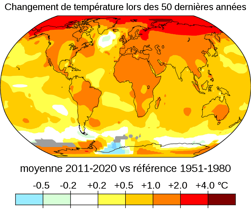Changement de la température moyenne dans le monde sur les 50 dernières années - via NASA