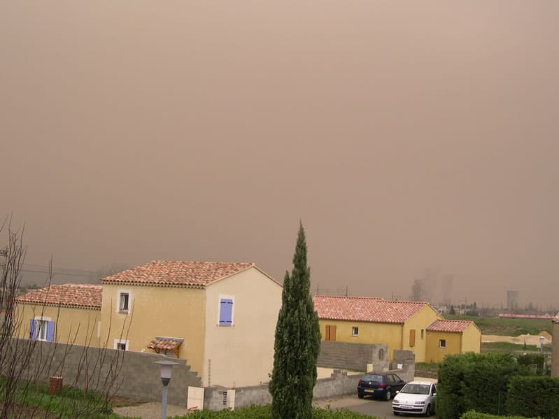 Ciel ocre et brumeux en raison du sable Saharien à Pierrelatte (Drôme) - 21 février 2004 - Nicolas Menard via Infoclimat