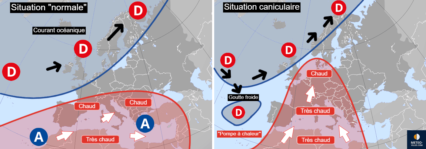Comparaison entre une situation « normale » et une situation favorable aux vagues de chaleur/canicules sur la France – Météo-Villes