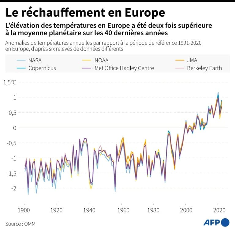 Évolution des températures moyennes en Europe depuis 1900 – AFP