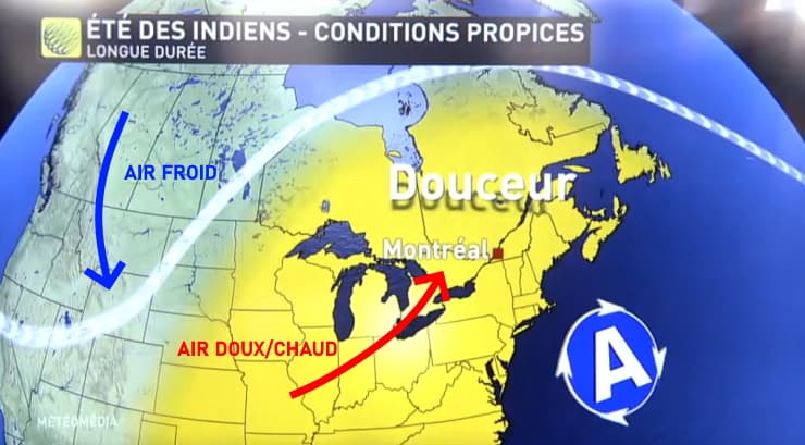 Schéma de la situation propice à l'observation de l'été indien - via Météo Média