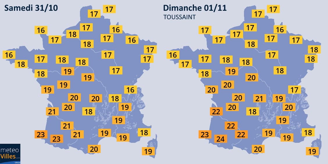 Prévisions des températures pour le samedi 31 octobre et le dimanche 1er novembre 2020 - Météo Villes