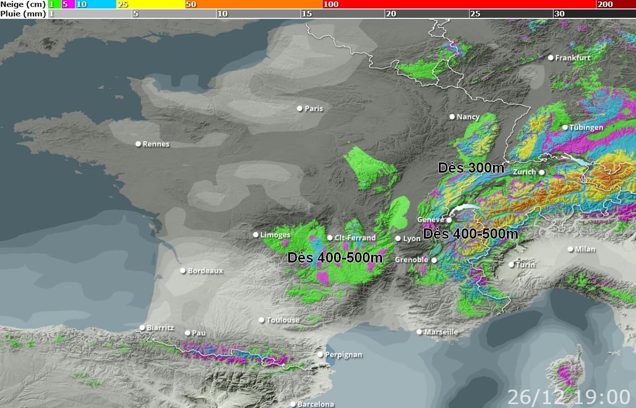 Accumulations de neige prévues entre le 24 et le 26 décembre – via skipass