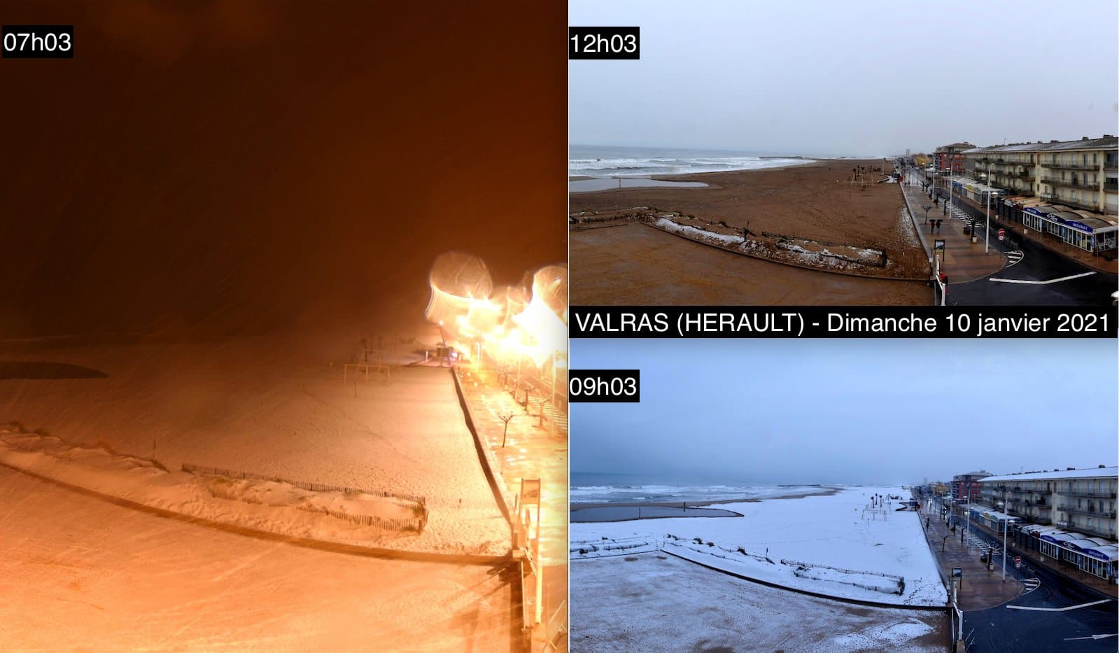 Tenue temporaire de la neige jusque sur la plage à Valras le dimanche 10 janvier – Via Skaping