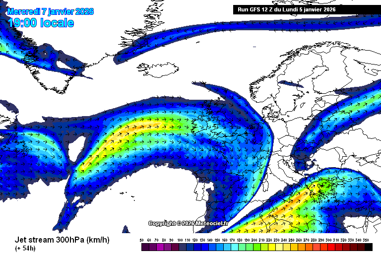 Cette reprise du flux océanique sera favorisée par un courant jet mieux orienté vers l'Europe. En effet, si ce vent d'altitude se montrait très ondulant ces derniers jours, favorisant d'ailleurs ces descentes d'air polaire vers la France, celui-ci va se montrer plus rectiligne entre l'Atlantique et l'ouest de l'Europe en seconde partie de semaine tout en se renforçant et se dirigeant vers la France.