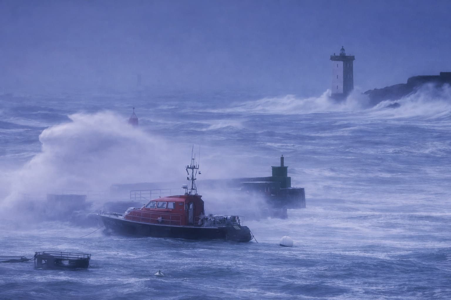 Le Conquet (Finistère), le 14 février 2014, alors que la tempête Ulla fait rage. Ouvrage Météo Extrême - Guillaume Séchet