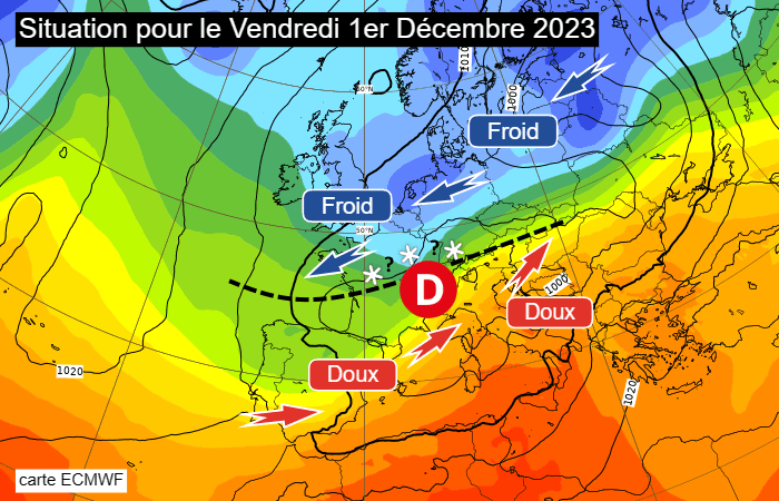 Situation pour le vendredi 1er décembre 2023 - carte ECMWF