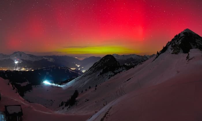 Aurores boréales depuis Morzine en Haute-Savoie en nuit du lundi 19 au mardi 20 janvier 2026 - Skaping