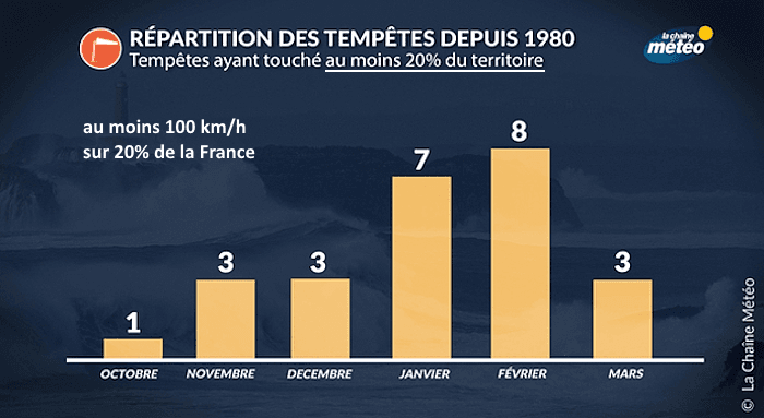 Répartition mensuelle des tempêtes ayant touché la France de 1980 à 2024 - La Chaîne Météo