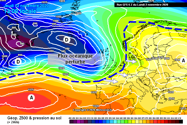 Si un temps temporairement doux et assez calme devrait régner en début de semaine sur la majeure partie du pays, les scénarios tendent de plus en plus vers la reprise d’un courant d’Ouest/Nord-Ouest perturbé à partir du 12 Novembre sur l’Ouest de l’Europe.