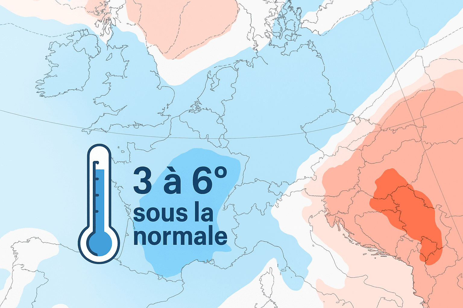 Tout au long de la semaine, l'indicateur thermique nationale sera largement inférieur aux normales avec un minimum d'environ 5°C en-dessous de la moyenne entre mercredi et jeudi.