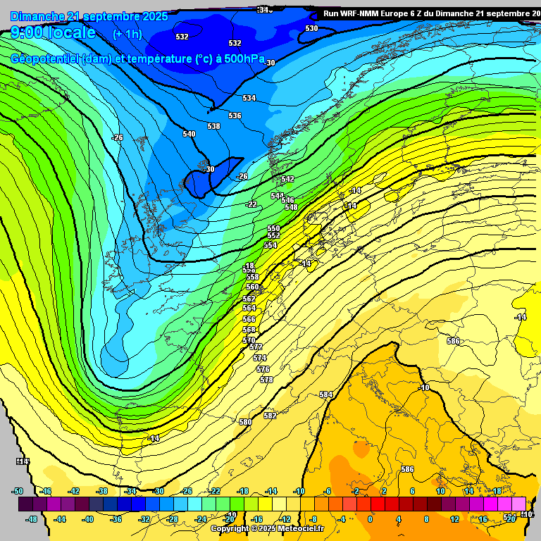 Évolution de la température 500 hPa jusqu'à vendredi 26 septembre - modèle Météo WRF - site METEOCIEL