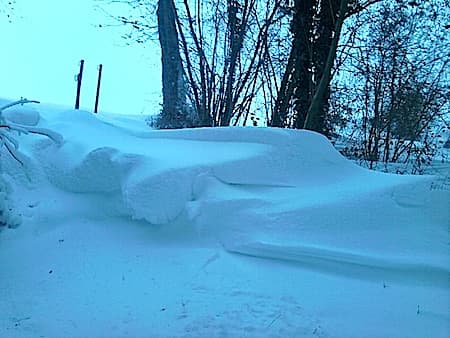 4e épisode neigeux en 4 jours dans l’Essonne le 20 décembre et congères de plus de 1 m de dans l’Aisne où 90 % des routes sont bloquées le 23 décembre – Via infoclimat.fr et Météo-Villes