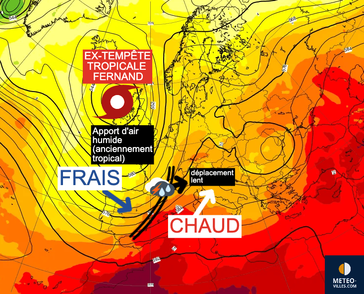 - L’arrivée de l’ex-tempête tropicale Fernand sur les îles britanniques, qui s’est transformée en une dépression classique des latitudes tempérées, mais qui conserve une forte humidité en raison de son ancienne nature tropicale.