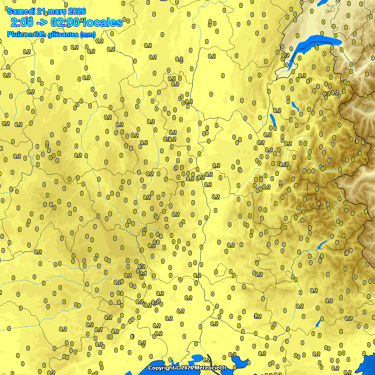 du Centre-Est au Jura, le risque orageux se montrera moins franc mais les précipitations s'annoncent également marquées jusqu'en fin de journée de mardi. C'est notamment de la région lyonnaise au Jura en passant par la Bresse et le nord de l'Isère que les cumuls de précipitations les plus importants sont attendus, pouvant dépasser les 70-90mm voire 100mm sur ces secteurs d'ici demain soir.