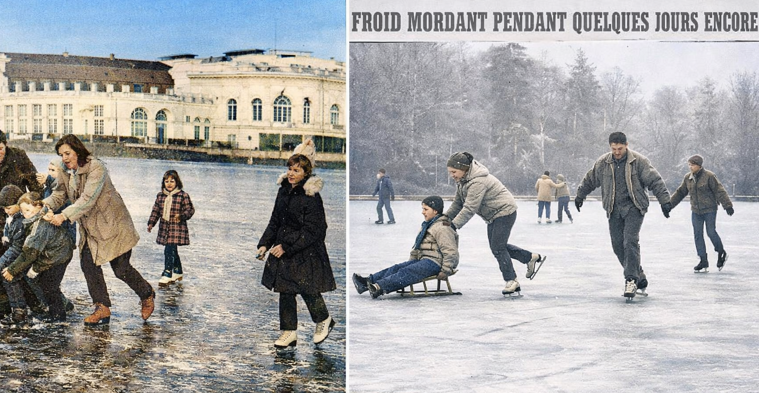Vague de froid de la fin du mois de décembre 1962 - Patinage en famille sur le Lac d'Enghien-les-Bains à Ville d'Avray, près de Paris - document copyright © Meteo-Villes