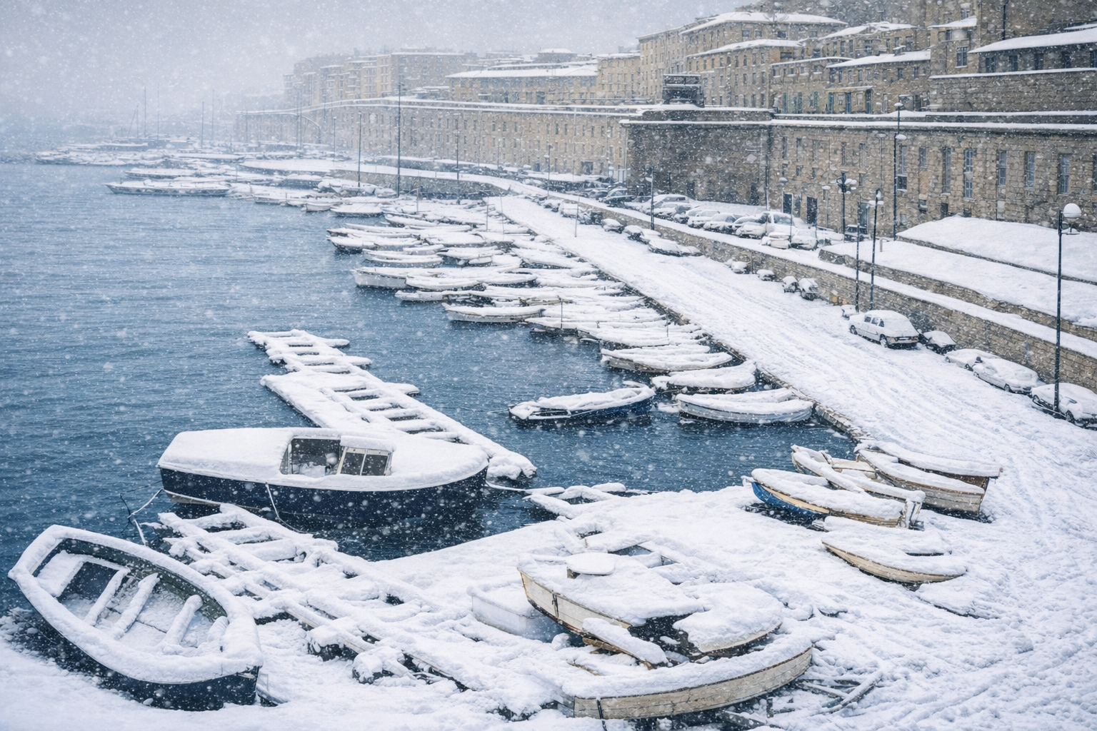 Vague de froid décembre 1962 - La neige recouvre Marseille (notre photo : le Vieux-Port) - document copyright © Meteo-Villes